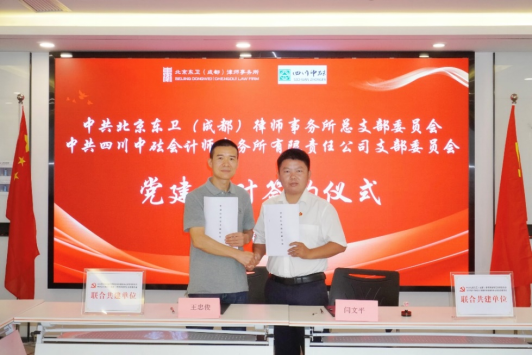 随后,在与会人员的见证下,四川中砝党支部与东卫(成都)律师事务所党总支签署了《党组织结对共建协议》。