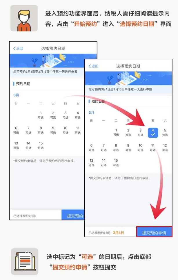 需要在3月1日至3月15日间办理年度汇算申报的纳税人,即日起至3月15日每天的早6点至晚22点可登录手机个人所得税APP进行预约,3月16日以后,无需预约即可登录手机个人所得税APP直接办理。如您确有紧急情况,又没有预约到合适日期,也可以到主管税务机关办税服务厅直接办理。如何进行预约办税呢?一起来学习吧。